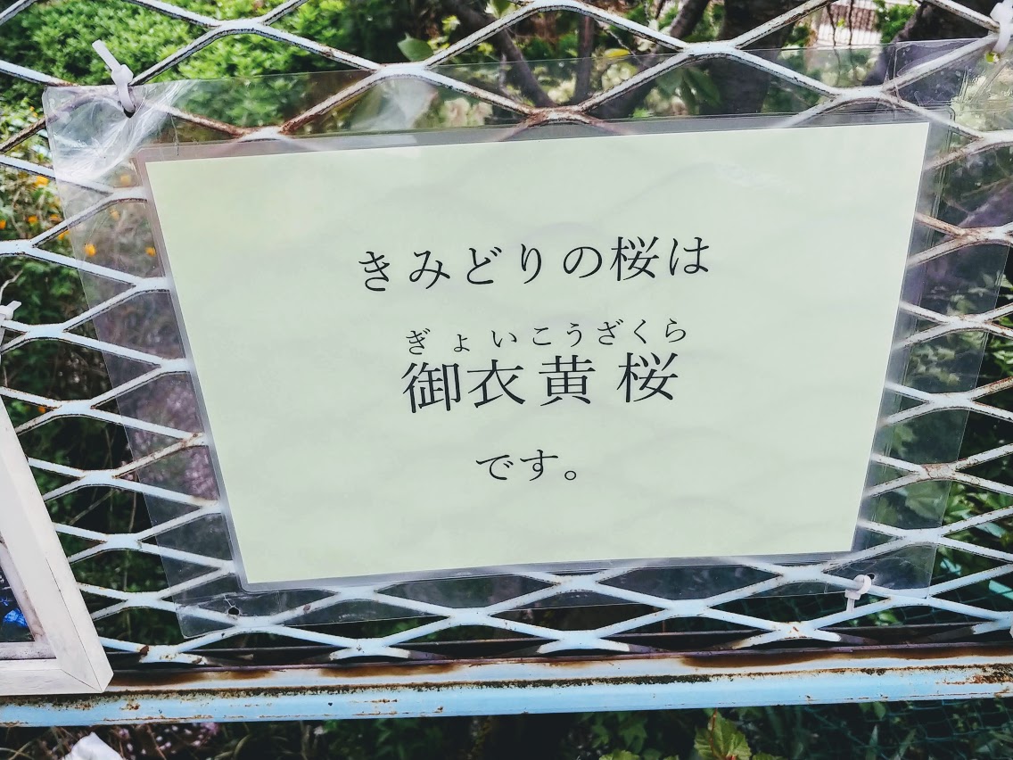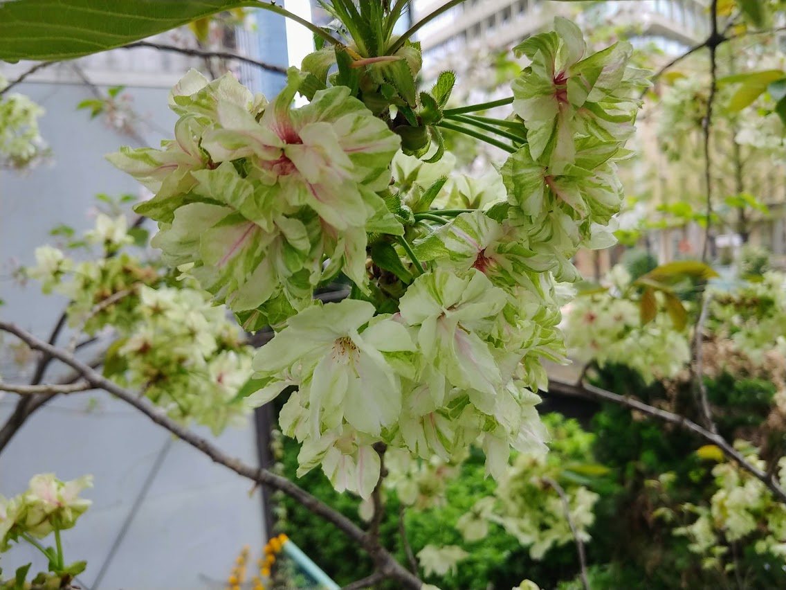 こちらはちょっと珍しい「御衣黄桜」。ヤナセ本社の近くで撮影。